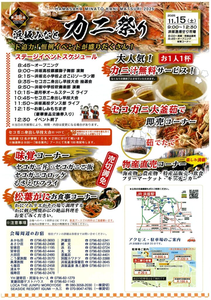 毎年恒例の「浜坂みなとカニ祭り」が開催されます。